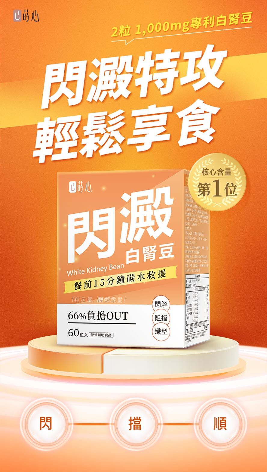 蒔心 醣油吸附代謝組 專利甲殼素錠 (60粒/盒)+白腎豆錠 (60粒/盒)